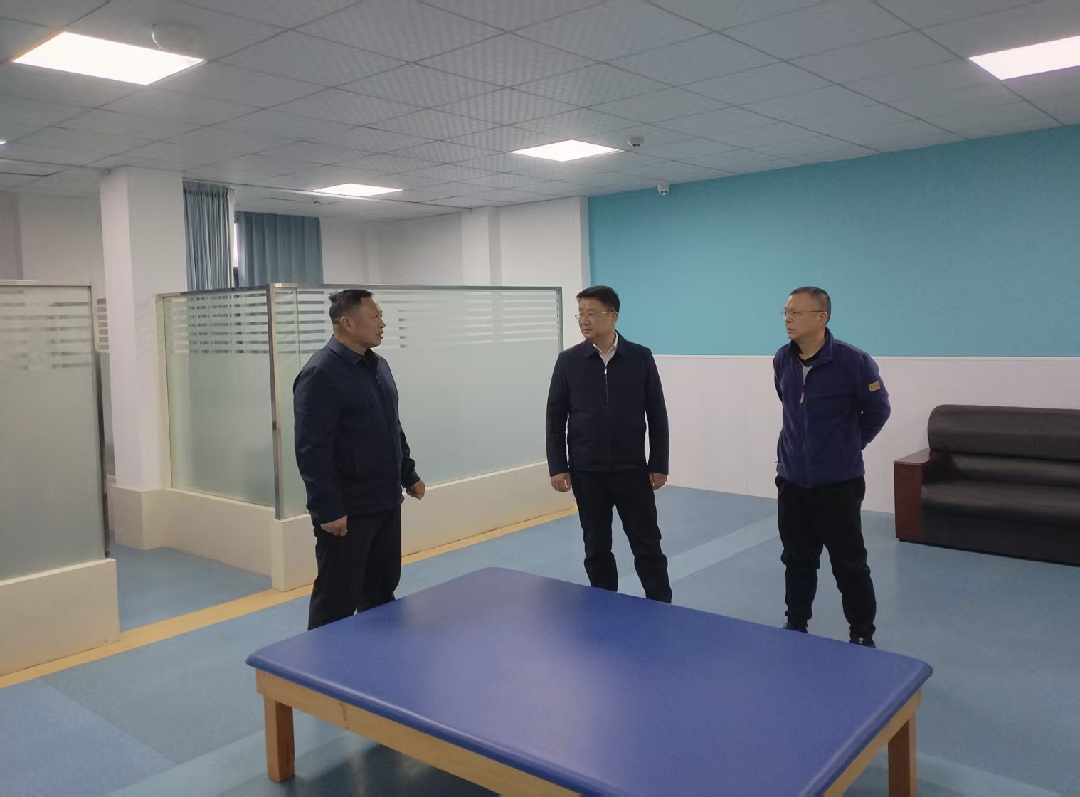 调研期间,郭沙一行还实地参观了医院新建的康复科,详细察看科室布局、设备配置及诊疗服务开展情况。他对医院以“产教融合”为路径推进康复科建设的创新模式给予高度肯定。